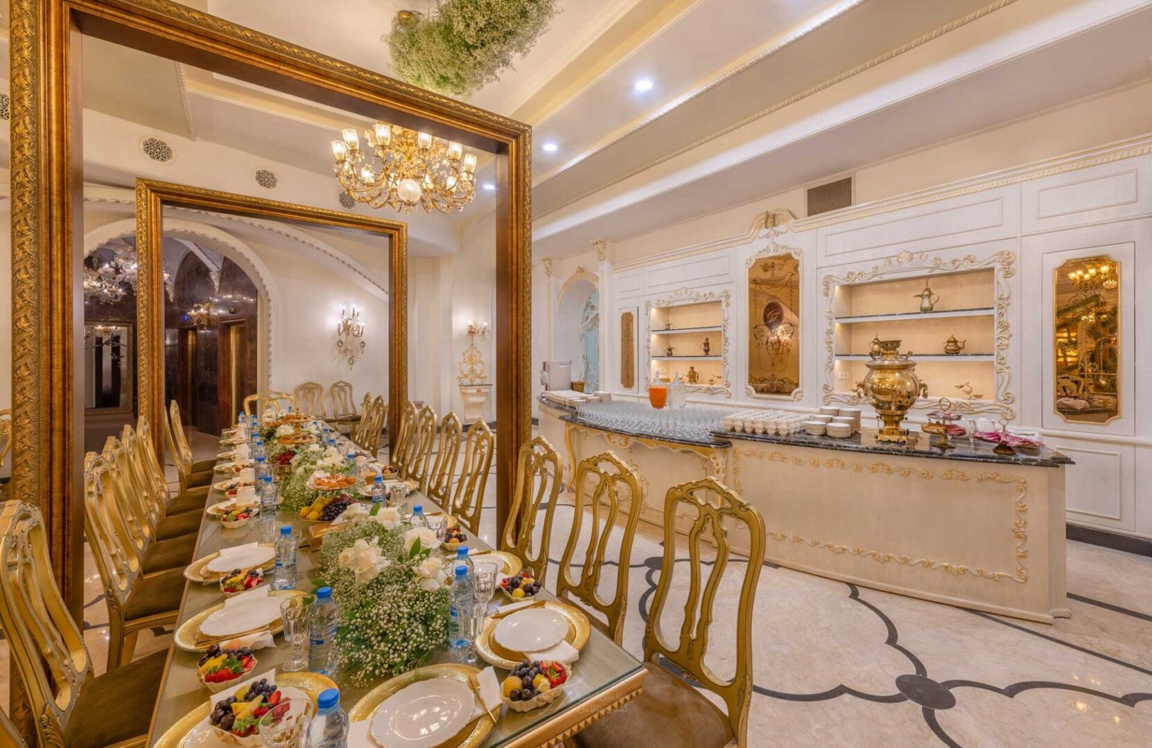 هتل پنج ستاره گلدن پالاس مشهد، میزبان شما عزیزان در یکی از سالن های مجلل خود، تالار هیوا با فضایی مجلل و با شکوه واقع در طبقه مثبت یک گلدن پالاس که به سبک کلاسیک طراحی شده می باشد.