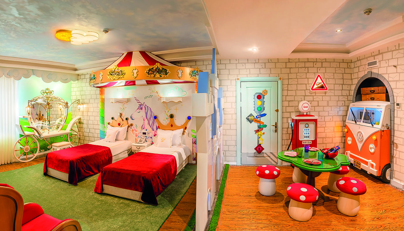 سوییت مخصوص کودکان با الهام از دنیای رنگارنگ و تخیلی طراحی شدهاند؛ فضایی پر از شخصیتهای کارتونی،